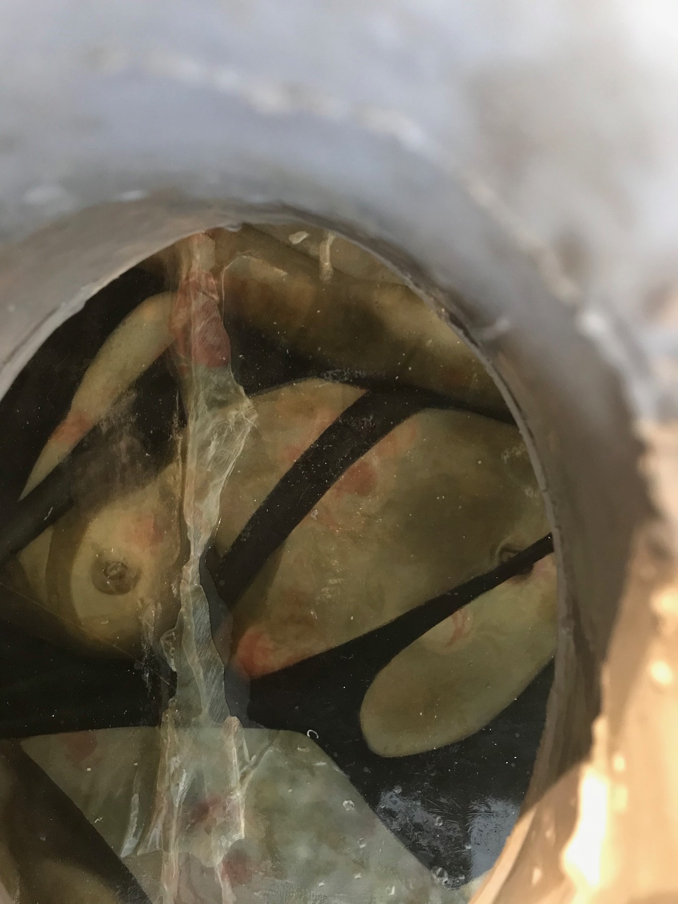 Parasit 2023 123 x 122 x 80cm Plywood, silicon, plastic wrap, oil on linen with polyester resin, Lycra, Chestnut roots, butyl rubber, Spruce and pine.